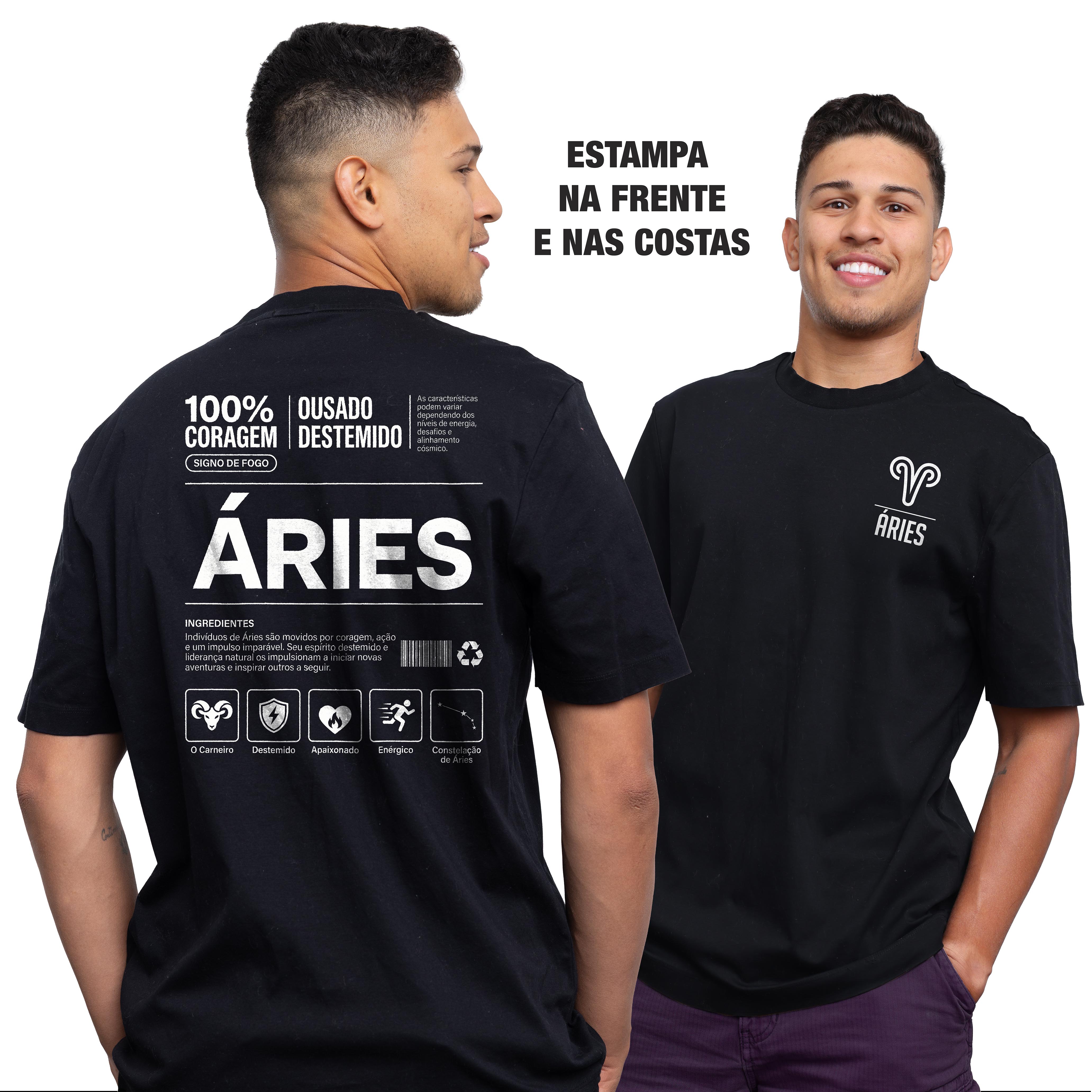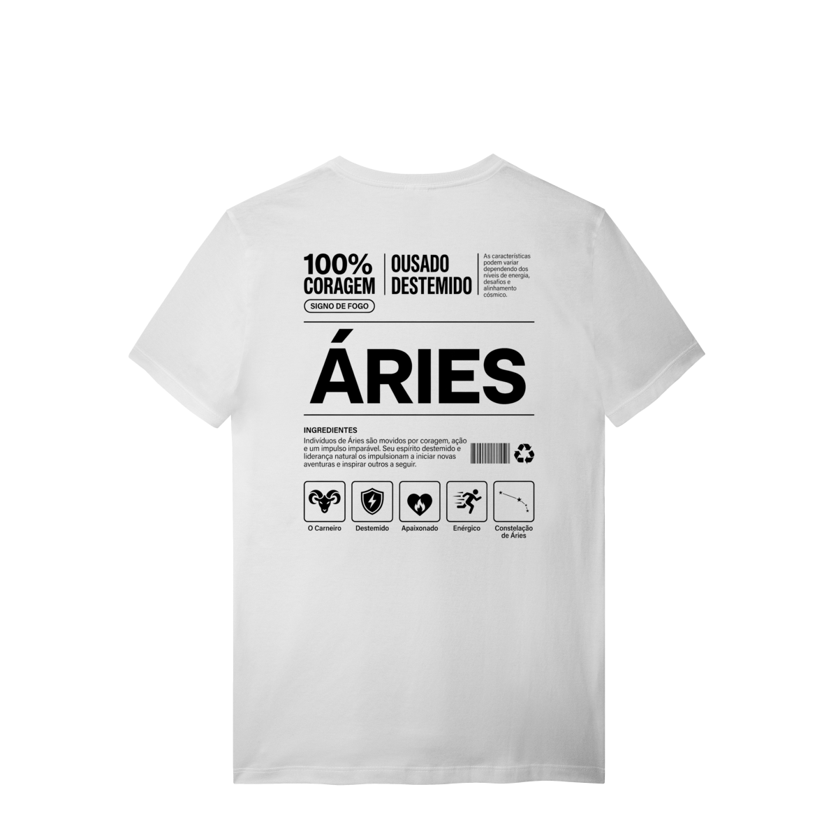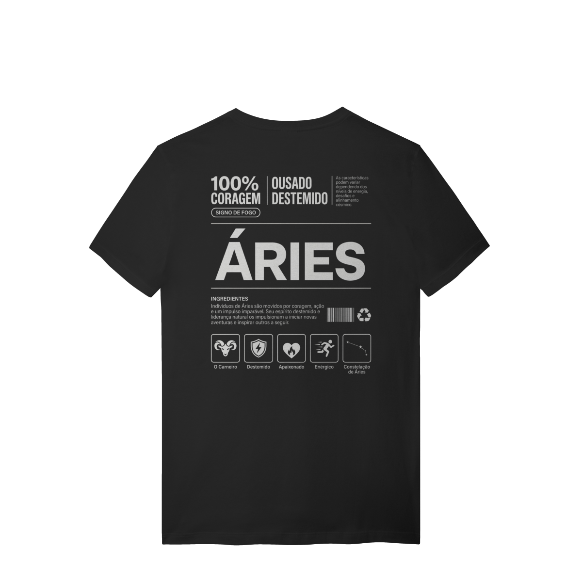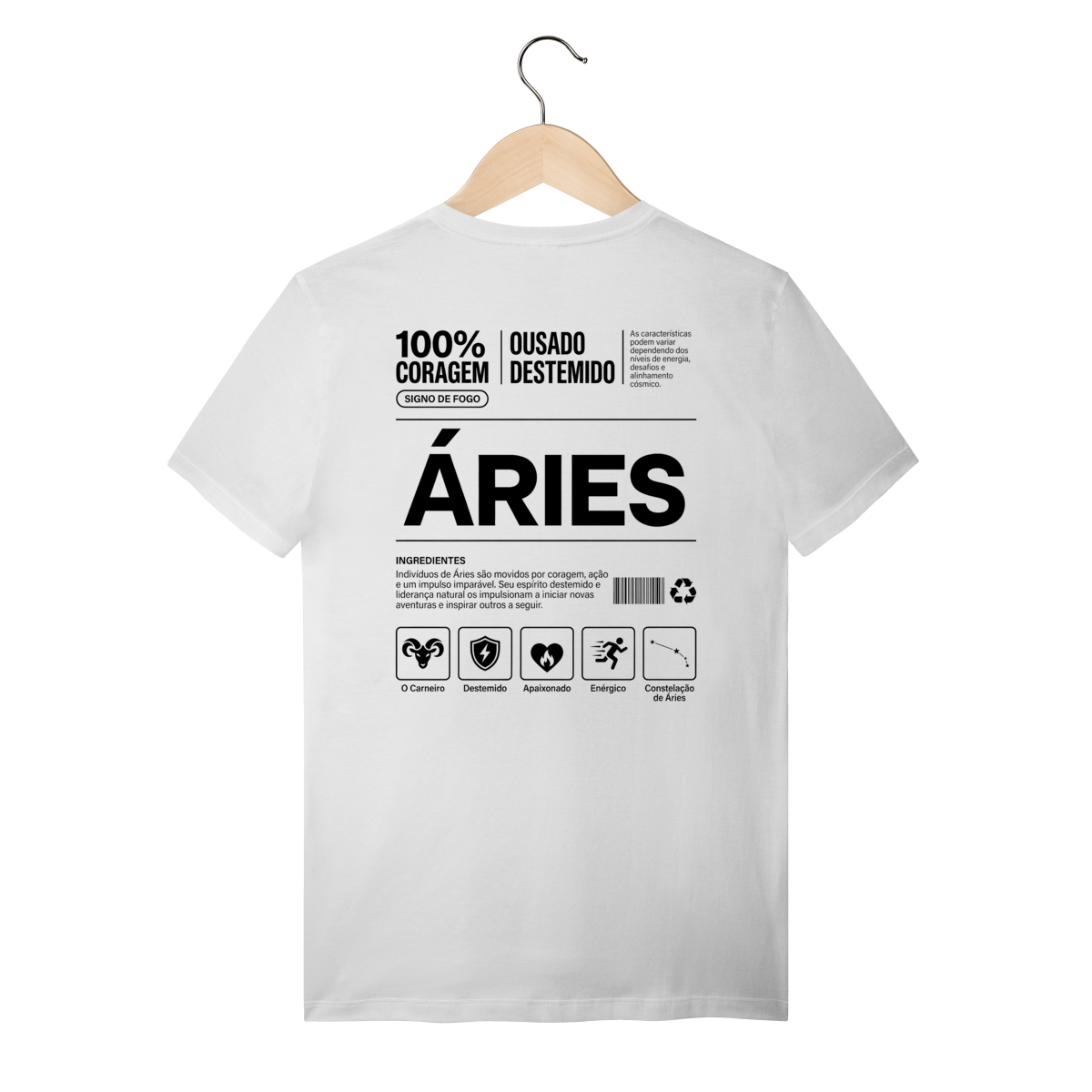 A camiseta Áries – Ingredientes do Signo representa a combinação perfeita de coragem, energia e espírito pioneiro.