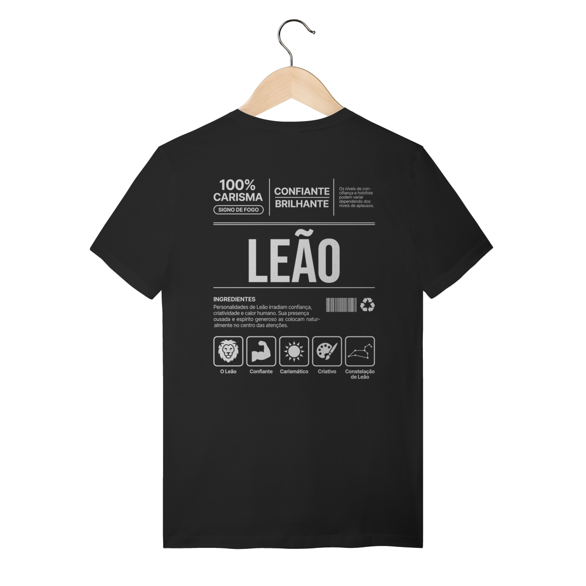 A camiseta Leão – Ingredientes do Signo traduz carisma, confiança e energia criativa.