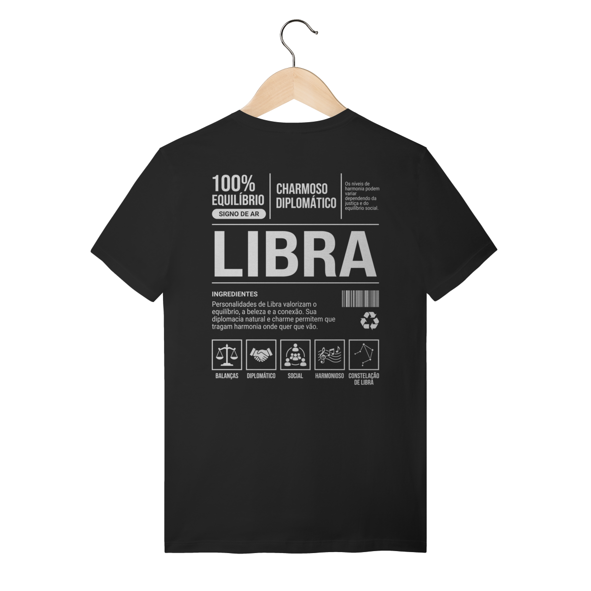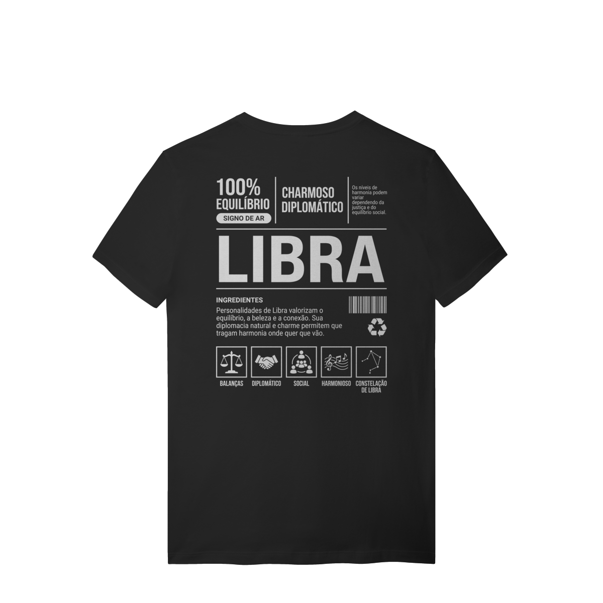 A camiseta Libra – Ingredientes do Signo simboliza charme, diplomacia e senso de justiça.