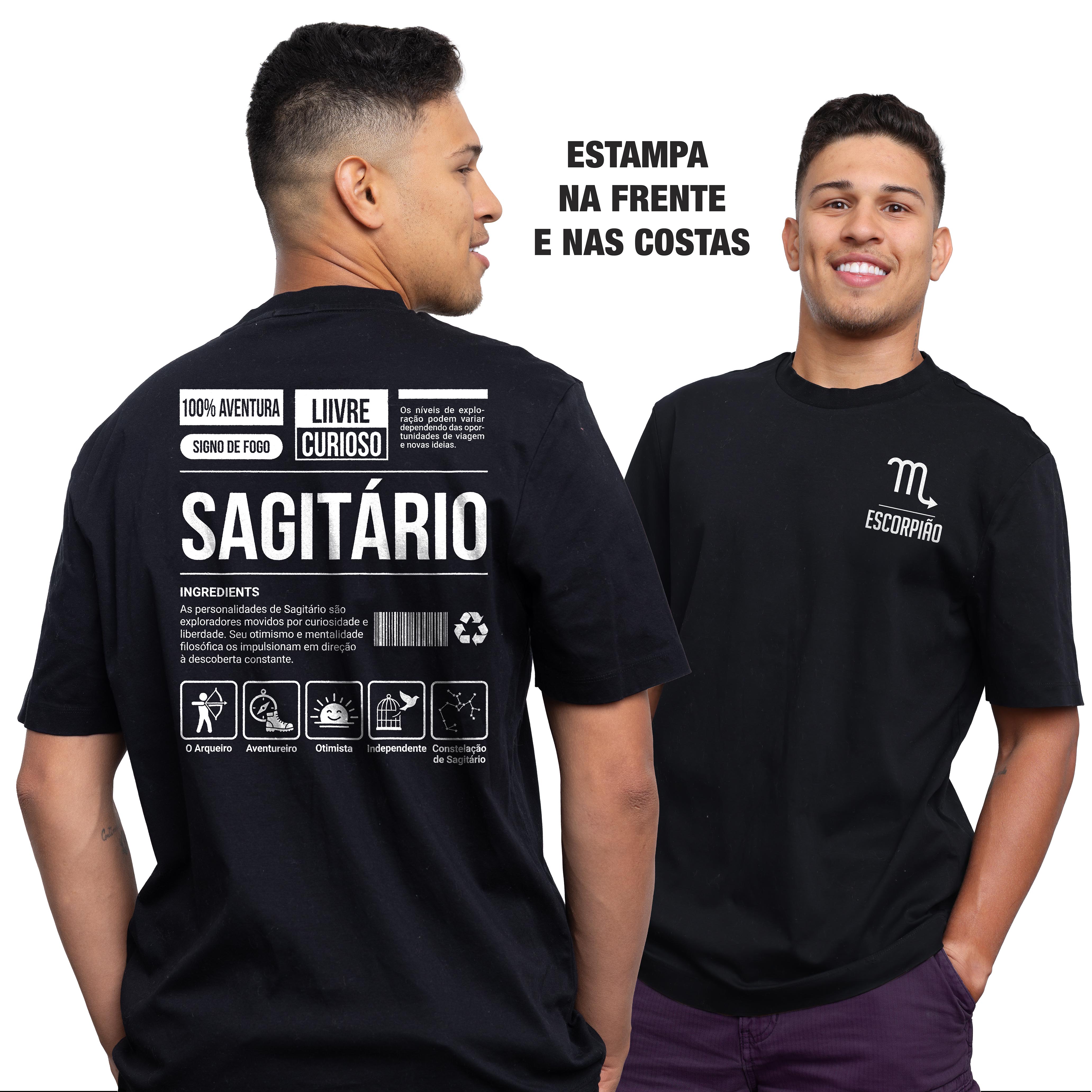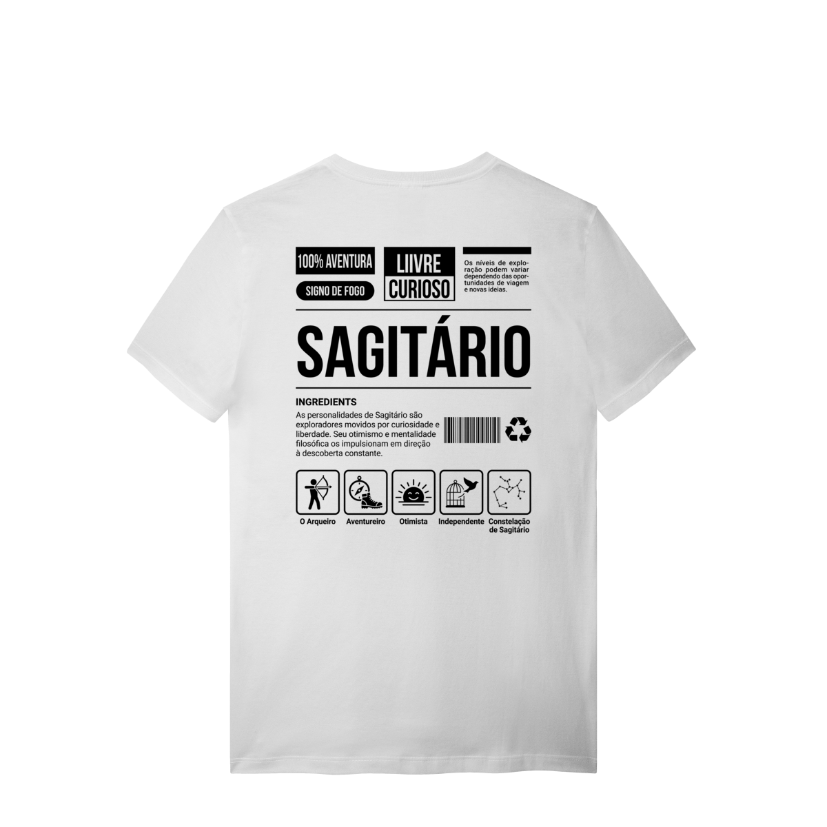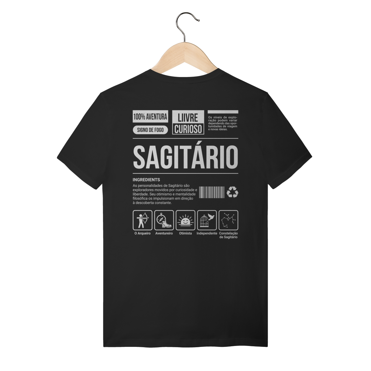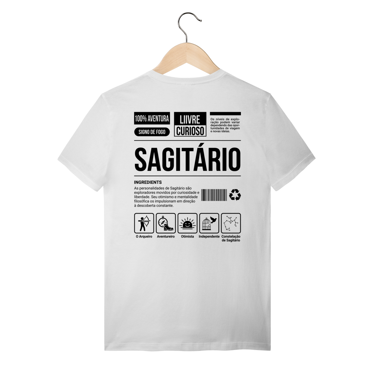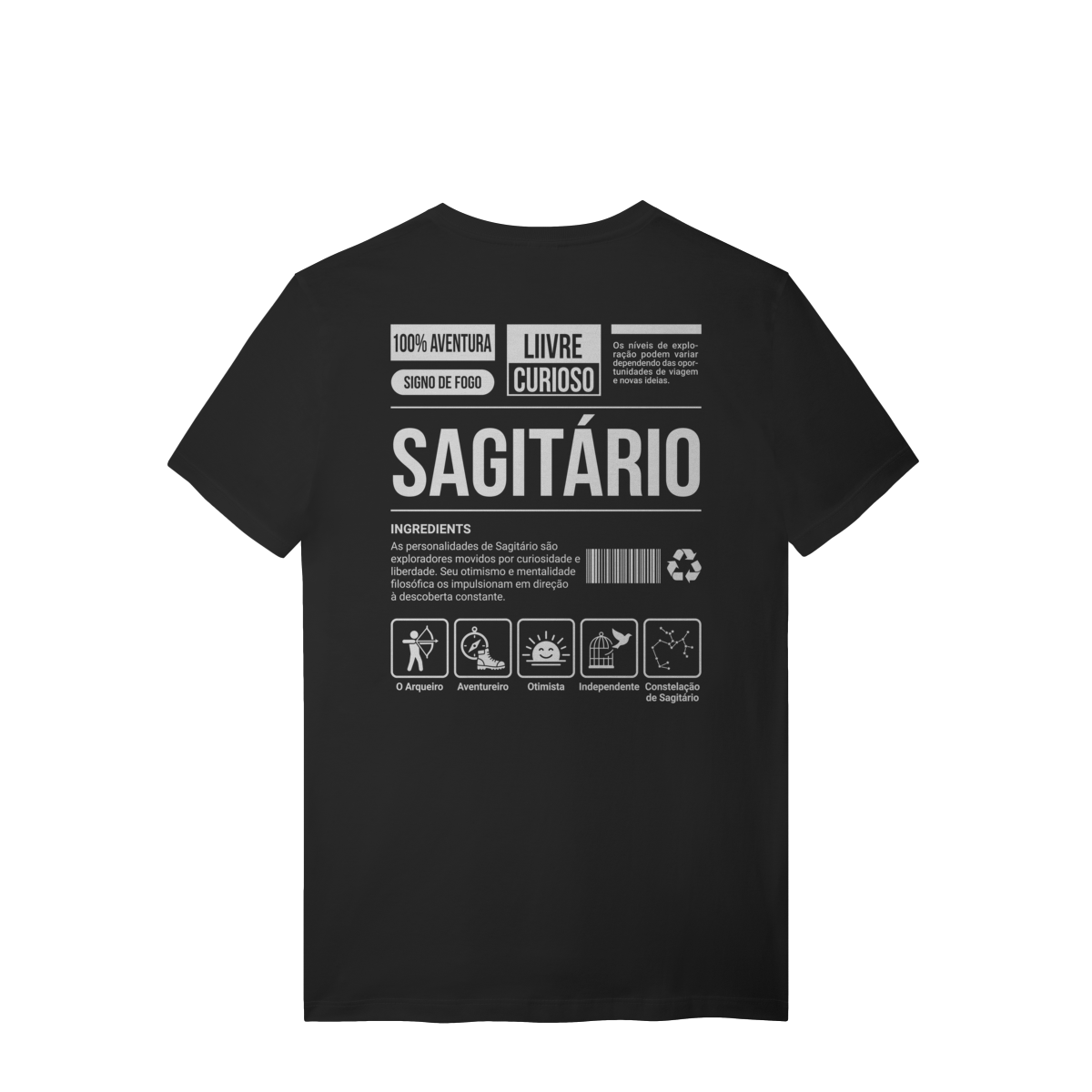 A camiseta Sagitário – Ingredientes do Signo traduz aventura, curiosidade e amor pela liberdade.