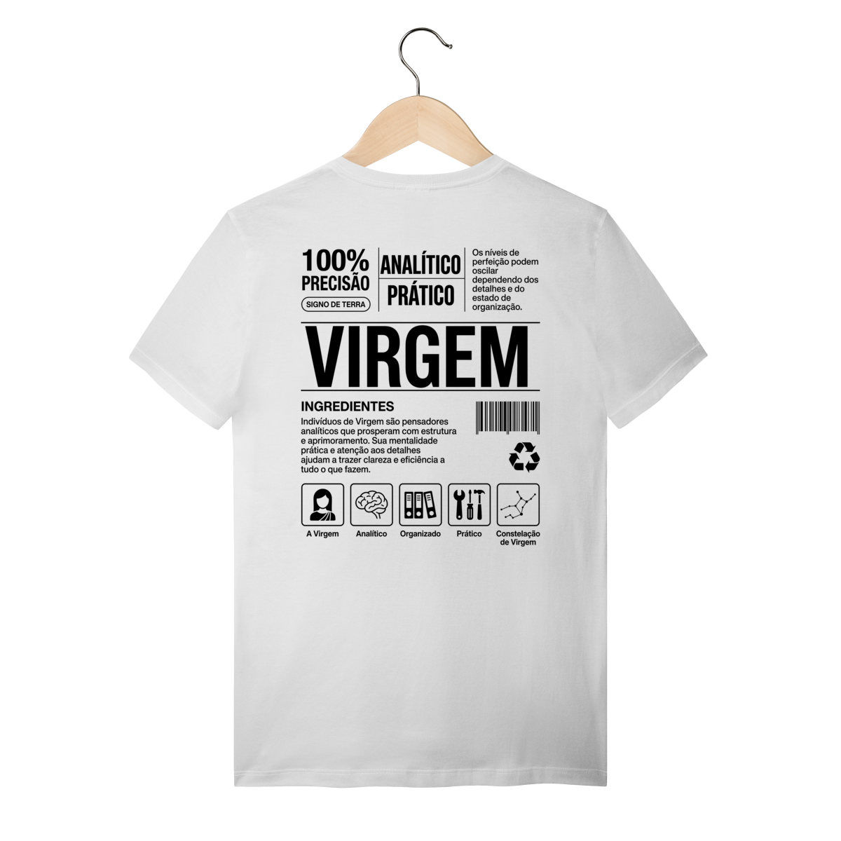 A camiseta Virgem – Ingredientes do Signo representa a mente analítica e organizada dos virginianos.